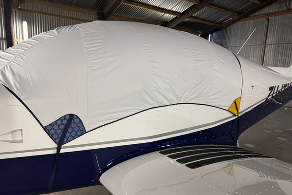 Working together with our Club, local seamstresses have produced a prototype aircraft cover for a Sling TSi, designed to protect aircraft while incorporating distinctive Shweshwe fabric detailing.